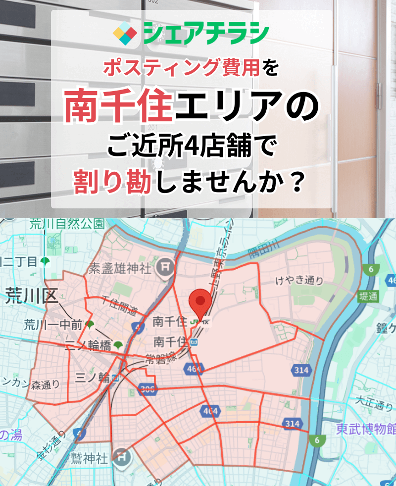 シェアチラシとは? シェアチラシとはご近所の店舗さん4社でチラシの掲載をシェアする事で格安でチラシのデザイン、印刷、ポスティングを丸投げできるこれまでにありそうでなかったサービスです。 デザイン ➕ 印刷 ➕ ポスティング 1万枚で月額33,000円(税込) 1万枚で月額33,000円(税込) 配布エリアはこちら 今すぐ日程を選択する \ ご利用頂いたお客様 / ~フィットネス業界~ エニタイムフィットネス様、JOYFIT様、ルネサンス様 ~買取業界~ 買取大吉様、大黒屋様、こやし屋様 ~美容業界~ POLA様、ホワイトイングカフェ様 、PMKメディカル様、癒し~ぷ様 ~教育業界~ カワイ楽器様、ネイス体操スクール様、パソコン教室わかるとできる様 ~その他~ BOOK OFF様、センチュリー21様、釣具買取専門店ウルラボ様 LINEで相談する ポスティング費用を全額負担してませんか? チラシの費用が高い 一般的にはデザイン、印刷、1万枚のポスティングで9万円以上かかります。 手間がかかる 制作会社、印刷会社、ポスティング業社とそれぞれ連絡を取る必要があります。 費用対効果が不透明 費用対効果が分からないチラシに投資をすることが不安というお声をよく伺います。 シェアチラシを利用すると デザイン ➕ 印刷 ➕ ポスティング 1万枚で月額33,000円(税込) 1万枚で月額33,000円(税込) 店舗の近くポスティングできますか?、他にどの店舗が掲載されますか?などのご質問はLINEでご相談ください! 店舗の近くポスティングできますか?、他にどの店舗が掲載されますか?などのご質問はLINEでご相談ください! LINEで相談する シェアチラシのメリット 圧倒的な低価格 一般的にはデザイン、印刷、1万枚のポスティングで9万円以上かかります。シェアチラシは3分の1以下の価格です。 捨てられにくい 4社の店舗でシェアするチラシです。旦那さん、奥さん、お子さんの興味が違うので捨てられにくいです。 手間がかからない デザイン、印刷、ポスティングを弊社に丸投げできます。 オリジナルデザイン 弊社の専属チラシデザイナーがデザインを作成します。制作事例は下記をご確認ください。 制作事例 A4サイズで表2枠・裏2枠のチラシスペースを合計4社でシェア! \ 利用社数 1,100社突破 / スポーツジム、ヨガ、整骨院、エステサロン美容室、ダンススクール、英会話スクール、空手道場、パソコンスクール、不動産、飲食店、出張買取など これまで対応エリア(全国対応可能) 東京都、神奈川県、埼玉県、千葉県、北海道、宮城県、茨城県、静岡県、大阪府、京都府、広島県、岡山県、福岡県、熊本県、佐賀県、大分県、鹿児島県 他エリアの相談はこちら 料金プラン ※デザイン+印刷+1万枚のポスティング全て込みの料金です。 ※料金は税込表示です。 配布MAP 4か月間で同物件を2回配る『反復手法』を採用 配布スケジュール 4枠なくなり次第受付終了! 12/20〜 Aエリア 1万枚配布 01/20〜 Bエリア 1万枚配布 02/20〜 Aエリア 1万枚配布 03/20〜 Bエリア 1万枚配布 ※4カ月で合計4万枚を配布します。 4枠募集! 残り2枠! 1枠目:決定! 2枠目:決定! 3枠目:募集中 4枠目:募集中 デザイン+印刷+ポスティングを一貫してサポート デザイン 専属チラシデザイナーがデザイン作成! 印刷 カラー印刷 コート紙90㎏ ポスティング 店舗を中心に徒歩15分圏内が目安 1万枚で月額33,000円(税込) 1万枚で月額33,000円(税込) LINEで相談する 今すぐ日程を選択する ご利用の流れ STEP1 申し込み ご契約内容を確認後お申込みを行います。申し込みフォームはこちらです。 STEP2 打合せ デザイナーとメールかLINEでデザインの擦り合わせを行います。 STEP3 ポスティング開始 配布スケジュールやエリアをご確認ください。 STEP4 お支払い 当月分翌月払いとなります。お支払いはクレジットカードまたは銀行振込(一括)にてお願い致します。 STEP5 ご報告 4カ月間/8か月間は毎月ポスティングの開始&完了メールが届きます。 STEP6 サービス終了後 再ポスティングご希望の方は継続、完了ご希望の方は完了となります。 よくあるご質問 Q. いつからポスティングを開始しますか? 配布スケジュールをご確認ください。 Q. ポスティングエリアはどこですか? 店舗を中心に徒歩15分圏内を目安にポスティングを行います。 詳細は配布MAPをご確認ください。 Q. いつまでに申し込めばよろしいですか? 4枠埋まった時点で終了となります。まずはご連絡ください。 Q. 隣に掲載される店舗は何業界ですか? お気軽にご連絡いただけますとご回答させていただきます。 Q. どのようなプランがありますか? 4ヶ月、8ヶ月、12ヶ月のプランがございます。初めてご利用の方には4ヶ月プランをおすすめしております。詳細は料金プランをご確認ください。 LINEで相談する LINE お電話